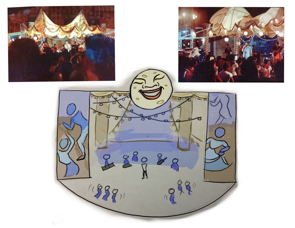 My final project with the Pratt Institute was to create a unique performance space. Guava Island is a musical film that takes place on a fictitious Caribbean island that’s predominantly based on Cuban culture. The space would be used for a music theatre adaptation of the film. I pulled inspiration for the stage from the Callejon de Hamel, a beautiful Cuban street famous for its colorful murals.