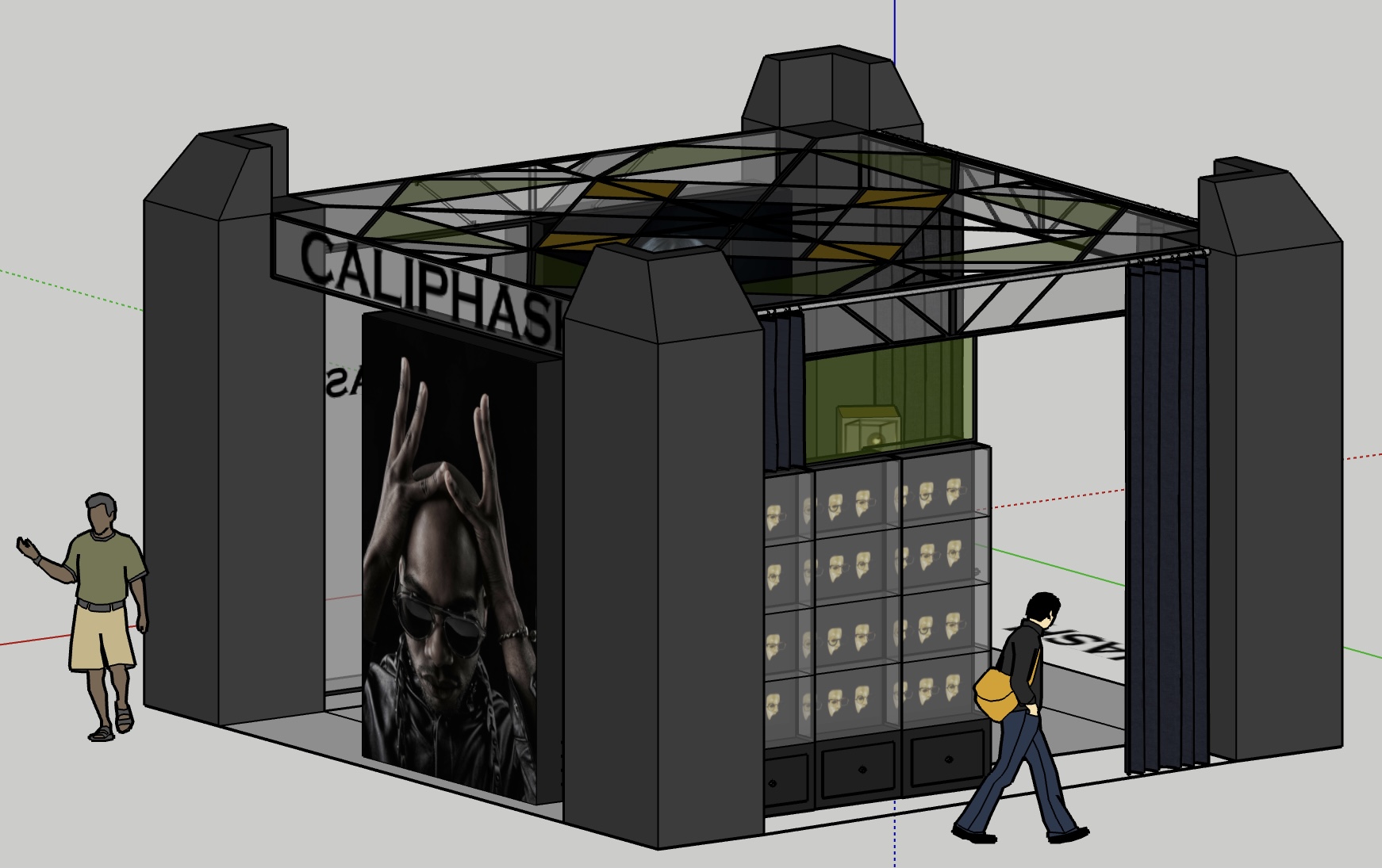 For this project, we were asked to design an eyewear popup for the MIDO expo in Milan, Italy. I chose to represent the South Korean brand Calipash and aimed to capture the brand’s dark and often intense marketing style.